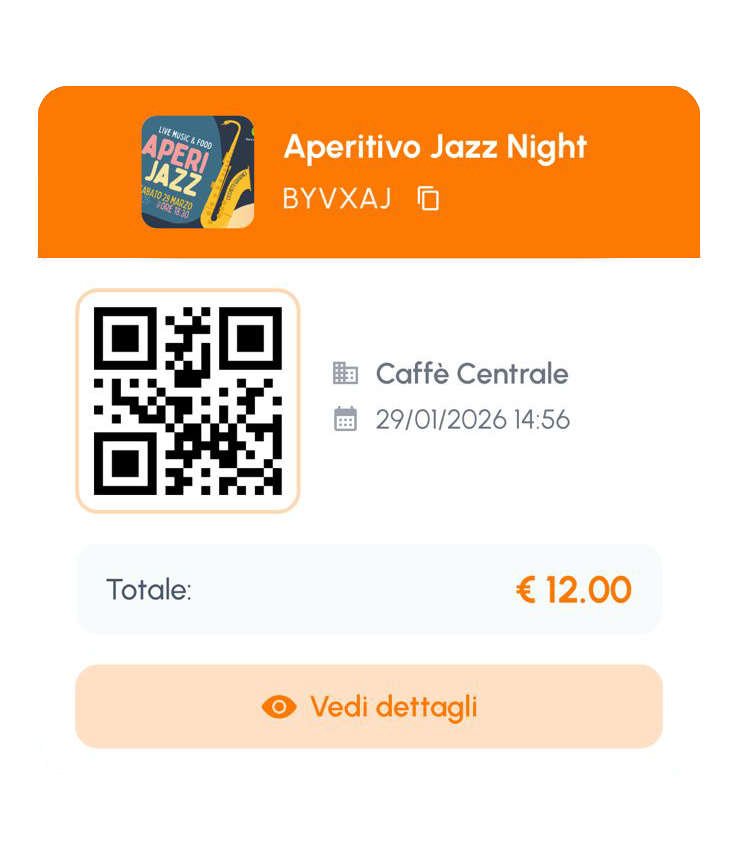 - Zero complicazioni, più visibilità: gestisci ordini e prenotazioni in modo tracciabile tramite QR code, garantendo un servizio impeccabile ai tuoi clienti.
